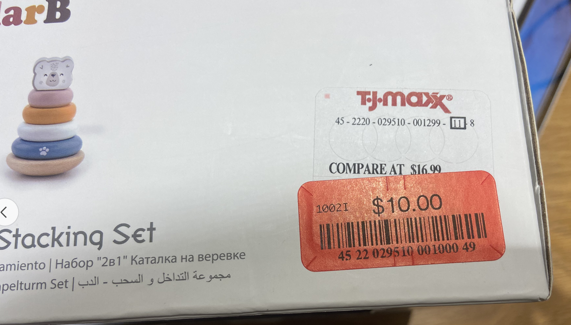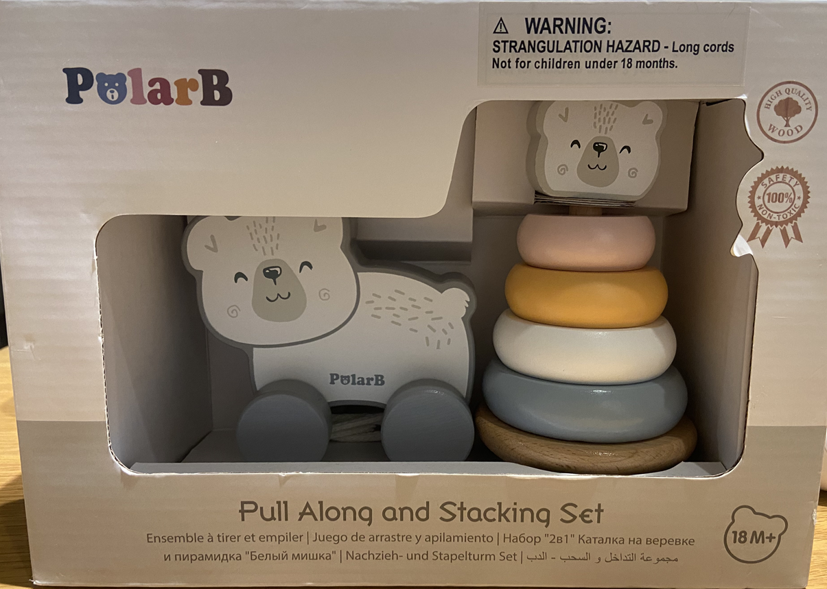 오늘 가서 제가 득템한 장난감 이에요. PolarB Pull along and stacking set인데요. 원래 TJ Maxx가격이 16.99 인데 한번 더 세일해서 10불에 팔더라구요.