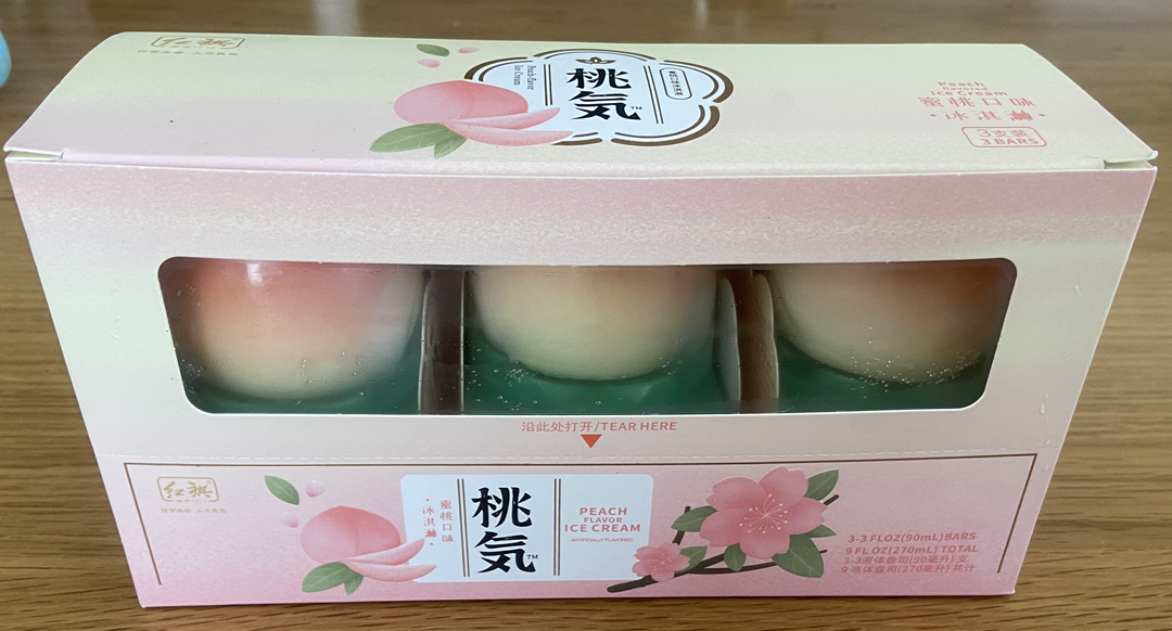 이 제품은 Hong Qi라는 중국 브랜드에서 나온 아이스크림이에요. 맛은 3가지, 망고 레몬 복숭아가 있는데 저는 복숭아만 먹어봤어요. 망고랑 레몬은 보이지 않더라구요.